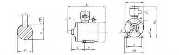 BBP變頻防爆電機(jī)結(jié)構(gòu)和安裝尺寸